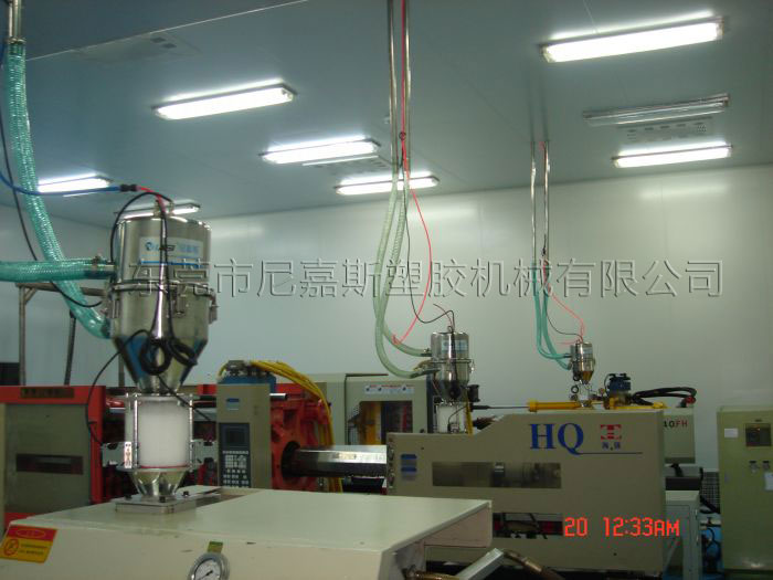 中央供料系統(tǒng)是根據(jù)客戶現(xiàn)場(chǎng)機(jī)臺(tái)的擺放情況對(duì)現(xiàn)場(chǎng)原料的用料情況,結(jié)合特有輔機(jī)設(shè)計(jì)備而設(shè)計(jì)的一種能夠?qū)崿F(xiàn)集中供料、集中控制,從而實(shí)現(xiàn)全廠無(wú)人化不間斷成型作業(yè)的整體性解決方案。