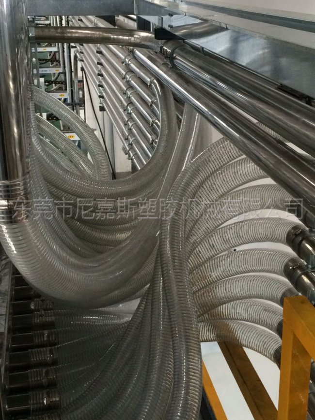 尼嘉斯中央供料系統(tǒng)采用一臺機(jī)一根管,密封式回路設(shè)計方式,保證整個系統(tǒng)運行穩(wěn)定,絕無塑膠回潮、堵料現(xiàn)象發(fā)生。它配合中央干燥機(jī)(除濕機(jī))系統(tǒng)使用,可使干燥空氣對原料進(jìn)行再次干燥,防止干燥后的塑膠回潮,同時在每個輸送循環(huán)后對輸送管進(jìn)行清理,確保管道內(nèi)沒有殘料。在避免原料回潮的同時也保證加入注塑機(jī)中原料一致性,在真空負(fù)壓同進(jìn)作用下,原料中原有的粉塵經(jīng)過過濾器(集塵器)系統(tǒng)濾出,有利提高產(chǎn)品質(zhì)量。