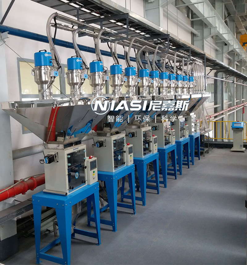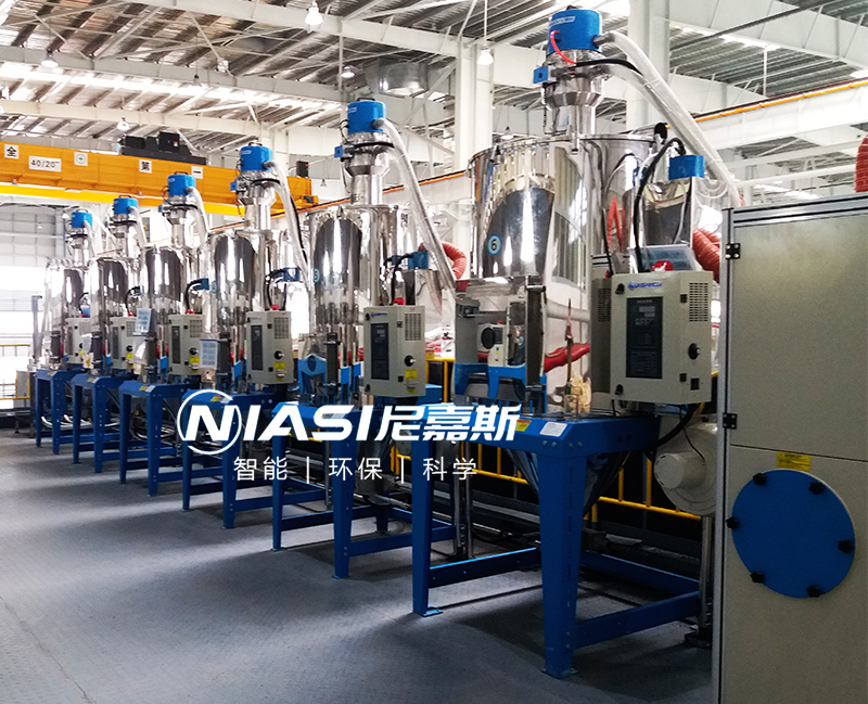 中央供料系統(tǒng)是根據(jù)客戶現(xiàn)場機(jī)臺的擺放情況對現(xiàn)場原料的用料情況,結(jié)合特有輔機(jī)設(shè)計備而設(shè)計的一種能夠?qū)崿F(xiàn)集中供料、集中控制,從而實(shí)現(xiàn)全廠無人化不間斷成型作業(yè)的整體性解決方案。