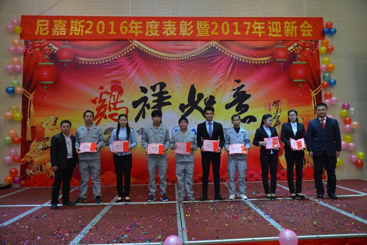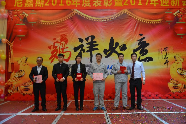 經(jīng)過十年的發(fā)展,尼嘉斯有今天的絢麗多彩,離不開這樣一群時刻心系企業(yè)的憂患,與企業(yè)同風雨、共命運,用不懈的努力為企業(yè)創(chuàng)造者每一筆財富的員工。在年會現(xiàn)場,尼嘉斯頒發(fā)了2016年度優(yōu)秀員工獎。