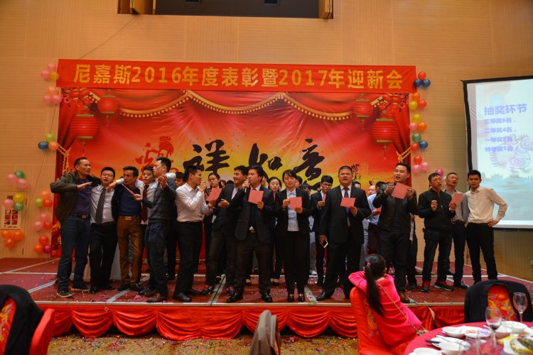 2017年1月14日,東莞市尼嘉斯塑膠機械有限公司2016年度表彰暨2017年迎新會在歐亞國際酒店成功舉辦。尼嘉斯全體員工和來自全國的尼嘉斯經(jīng)銷商和供應(yīng)商,以及與尼嘉斯有深度合作的企業(yè)代表在內(nèi)共計200多人共聚一堂,共享尼嘉斯2017迎新年會。