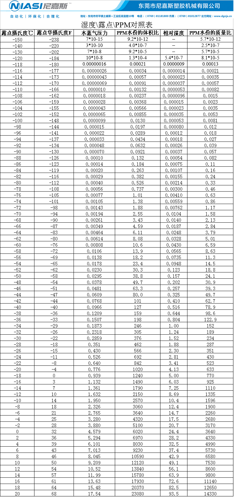 尼嘉斯參數(shù):濕度\露點(diǎn)\PPM對(duì)照表 http://www.gforx.com.cn/cn/problem/300.html 尼嘉斯參數(shù):濕度\露點(diǎn)\PPM對(duì)照表